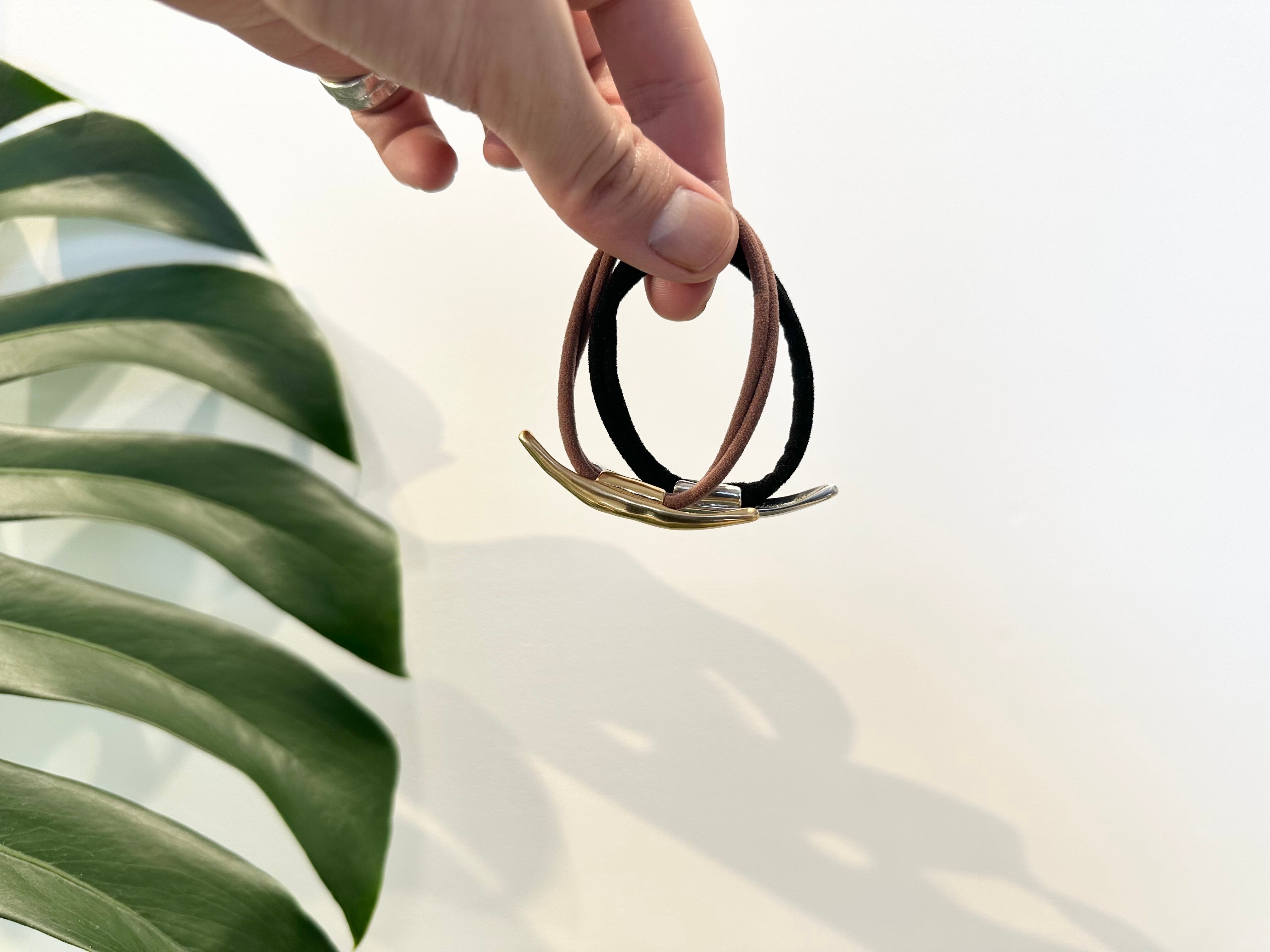 ヘアゴムの色で雰囲気も変わりますし、細いヘアゴムを二重に通すのもおすすめです。自分好みにカスタムしてお使い下さい。